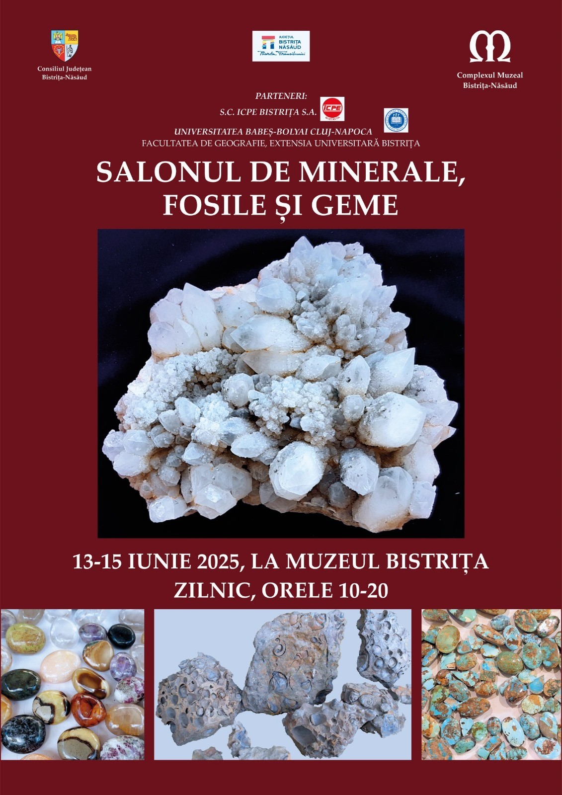 𝐒𝐚𝐥𝐨𝐧𝐮𝐥 𝐝𝐞 𝐦𝐢𝐧𝐞𝐫𝐚𝐥𝐞, 𝐟𝐨𝐬𝐢𝐥𝐞 𝐬̧𝐢 𝐠𝐞𝐦𝐞, expoziţie cu vânzare care va avea loc în perioada 13-15 iunie 2025, în incinta Muzeului Bistriţa, între orele 10ºº – 20ºº zilnic.