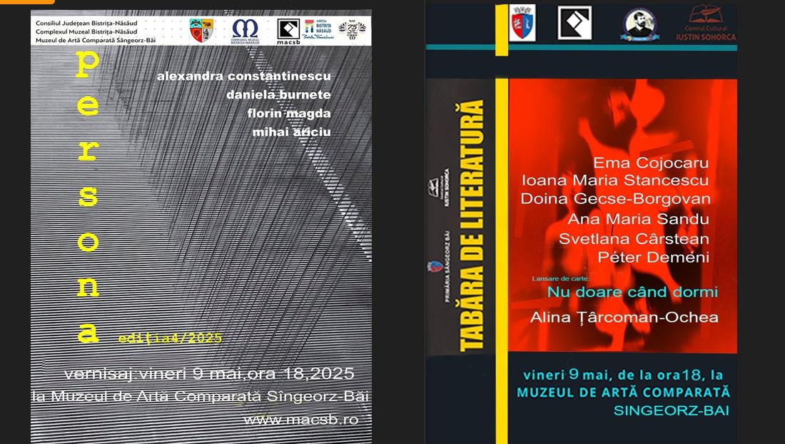 Home » 𝗩𝗶𝗻𝗲𝗿𝗶, 𝟵 𝗺𝗮𝗶 𝟮𝟬𝟮𝟱, 𝗼𝗿𝗮 𝟭𝟴:𝟬𝟬 la Muzeul de Artă Comparată din Sîngeorz-Băi va avea loc vernisajul expoziției de pictură și sculptură „𝗣𝗘𝗥𝗦𝗢𝗡𝗔”, ediția a IV-a
