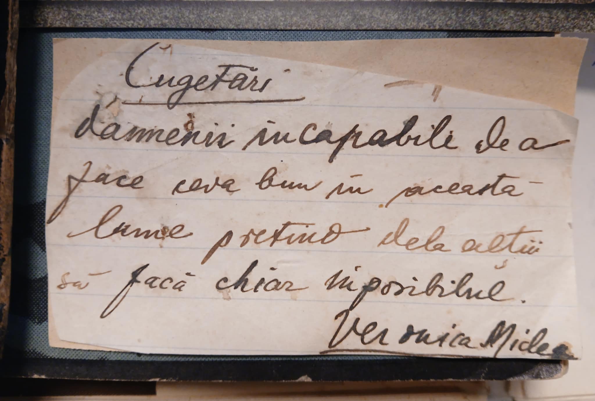 „Când îţi scrii cea mai frumoasă pagină în cartea vieţii tale, soarta, cu vecinica ei ironie, varsă cerneală peste foile ce urmează.”
