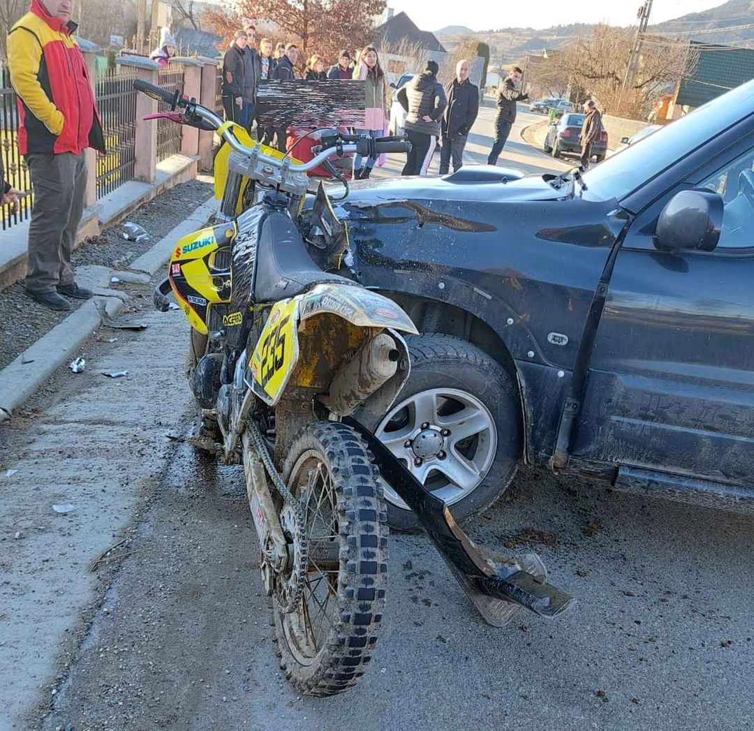 Un motociclist în vârstă de 26 de ani a fost rănit grav, ieri după-amiază, într-un accident rutier la Lunca Ilvei. Originar din localitate, tânărul a suferit un traumatism cranian sever și fractură deschisă de femur, fiind dus de urgență la spitalul din Bistrița.