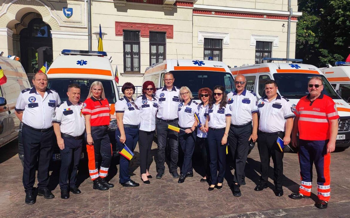 Printre cei 600 de participanți care au dat onorul în parcul Brâncuși s-au numărat și reprezentanții Serviciului de Ambulanță Județean Bistrița-Năsăud.