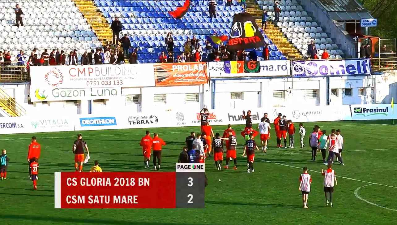 În această după-amiază, Gloria a câștigat cu 3-2 în fața CSM Satu Mare, în etapa a 4-a a play-off-ului din Liga a III-a. Pentru echipa noastră au marcat Antonio Maonache, în minutk 10, Alex Stoica, în minutul 62 și Harald Fridrich, în minutul 90+2. Au evoluta Flaviu Bodea – Antonio Manolache (Bogdan Vasile ’81), Harald Fridrich, Paul Copaci, Alex Georgescu (Ovidiu Stoianof ’57), Alberto Țica (Raul Runcan ’46), Adam Abdul, Ionut Rus, Alex Stoica (Carl Davordzie ’71), Alex Yameogo, Gheorghe Gondiu (Marius Savu ’57). Rezerve neutilizate: Florin Bănuță, Sergiu Luca, Alexander Trifan, Marius Curtuiuș .