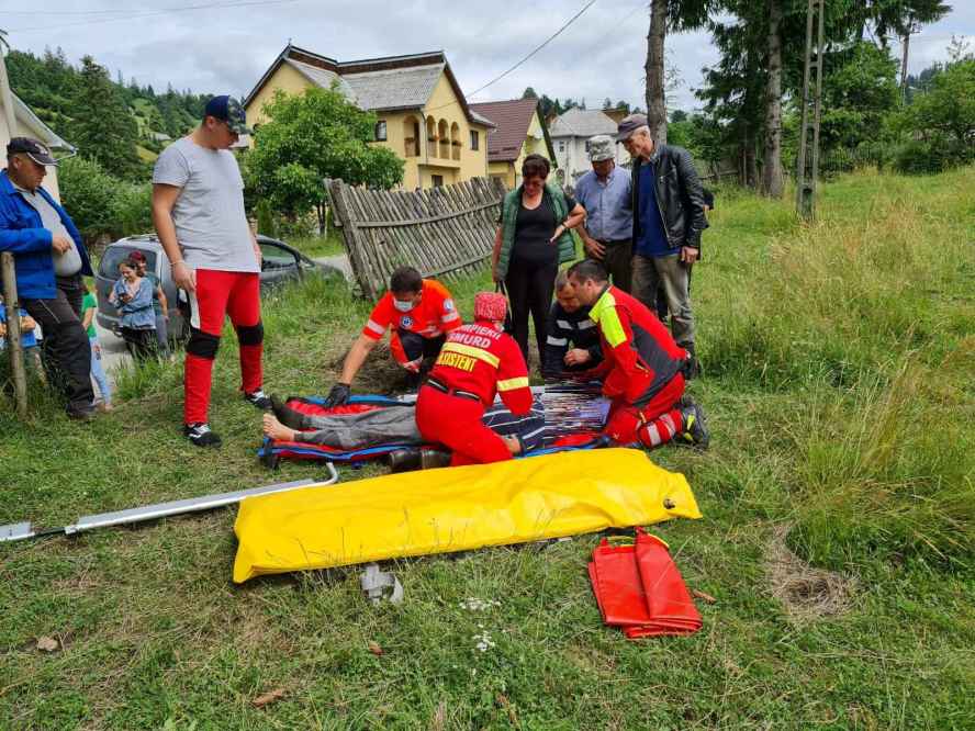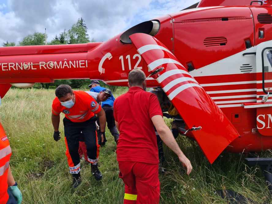 Cu un traumatism cranian destul de grav, însă conștient și cooperant rănitul a fost preluat de elicopterul SMURD chemat în ajutor pentru transferul aerian la o clinică din Cluj-Napoca.