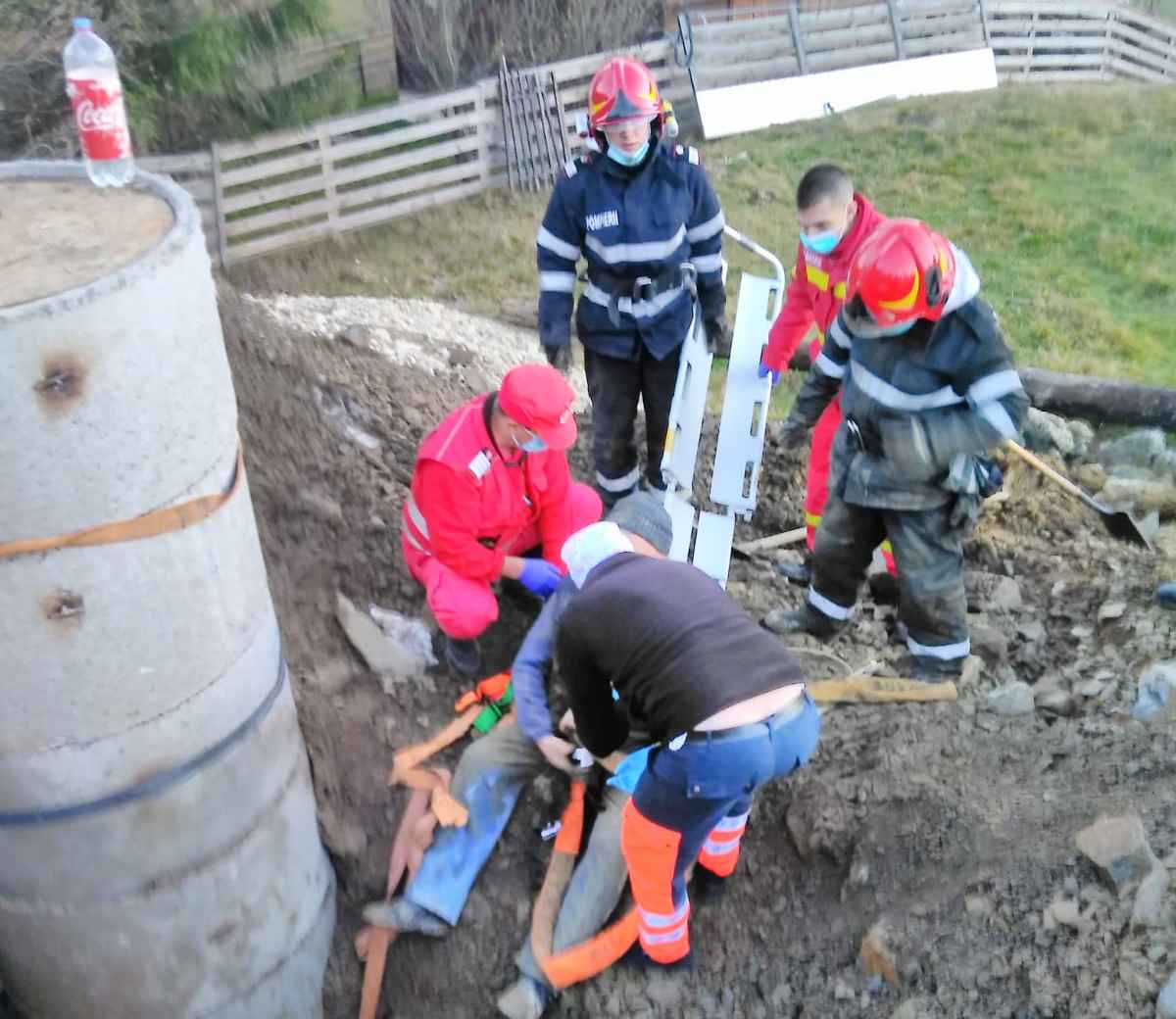 În această după-amiază, un bărbat a fost surprins de un mal de pământ în timpul unor lucrări de canalizare, pe raza satului Colibița.