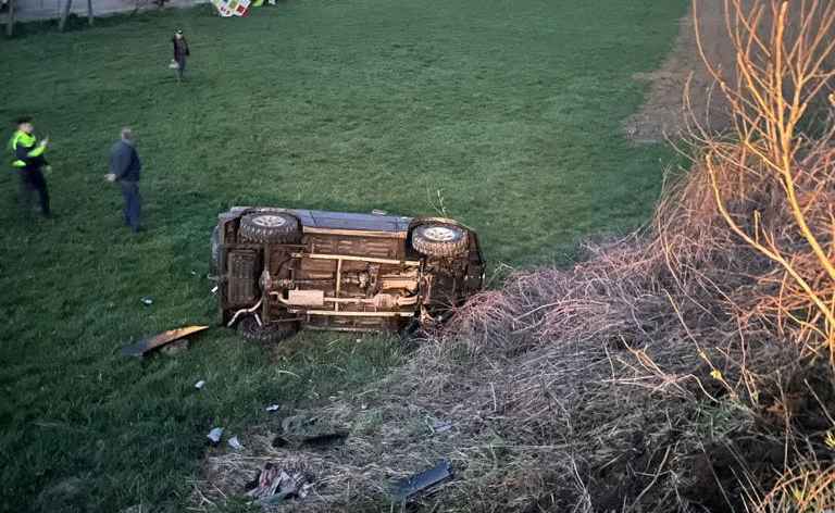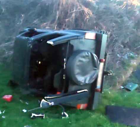 Pe Drumul Județean 172G, în comuna Livezile, autoturismul urmărit de echipajul rutier a părăsit partea carosabilă și s-a răsturnat.