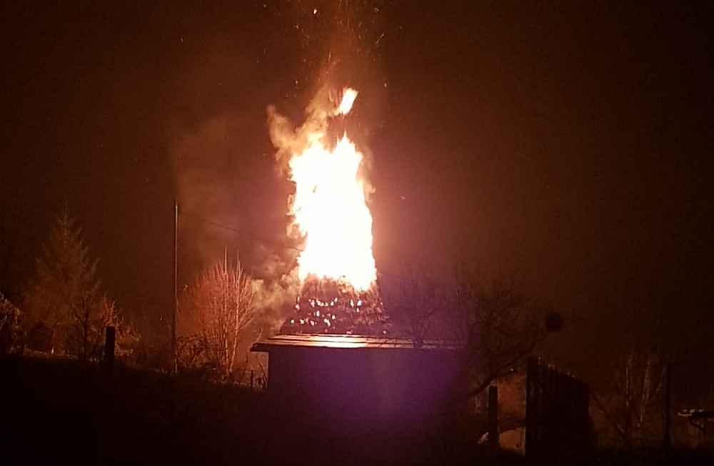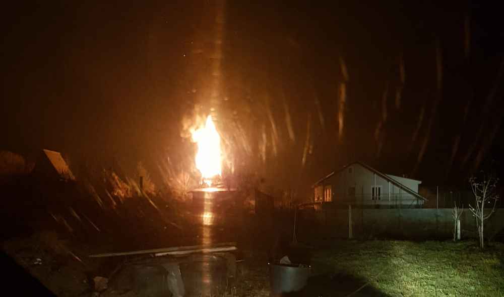 În fine, mai spre seară, o casă de vacanță, construită din lemn, a ars ca o torță, la Valea Ghinzii.