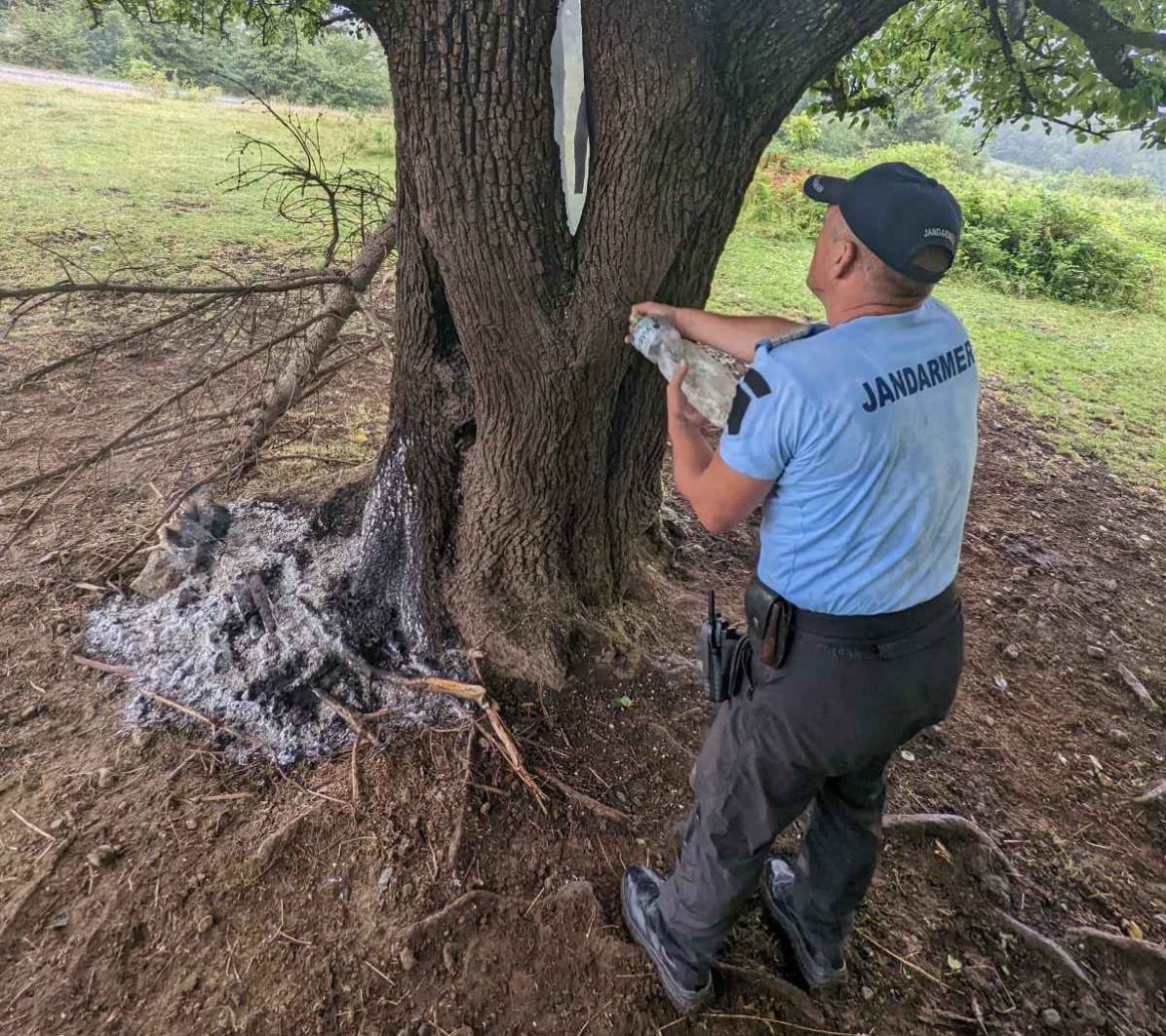 Copacul a luat imediat foc și exista pericolul ca incendiul să se extindă rapid la pădurea din imediata apropiere. (situată la o distanță de aproximativ 30 de metri).