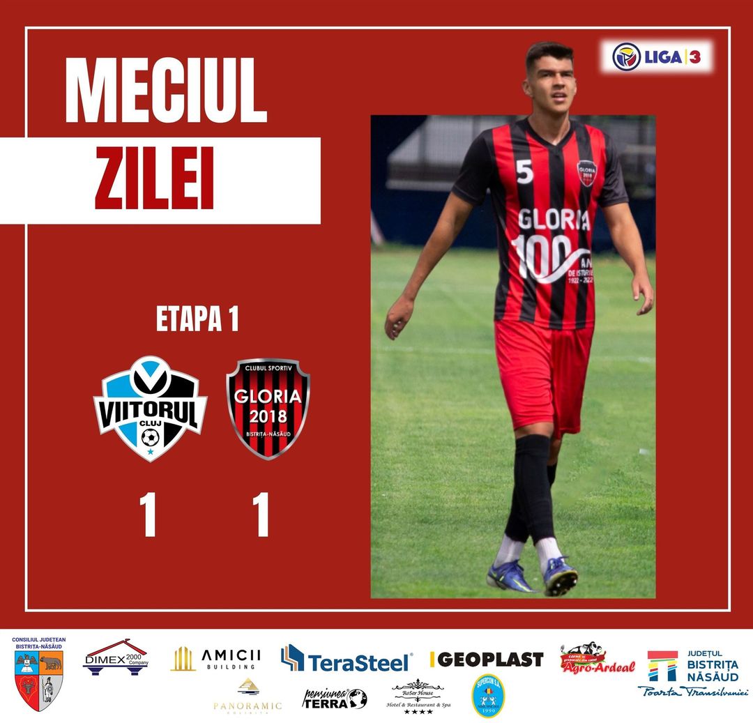 CS Gloria 2018 Bistrița-Năsăud a terminat la egalitate, scor 1-1, primul meci din seria a 9-a a Ligii a IIII-a, în compania ACS Academia de Fotbal Viitorul Cluj –