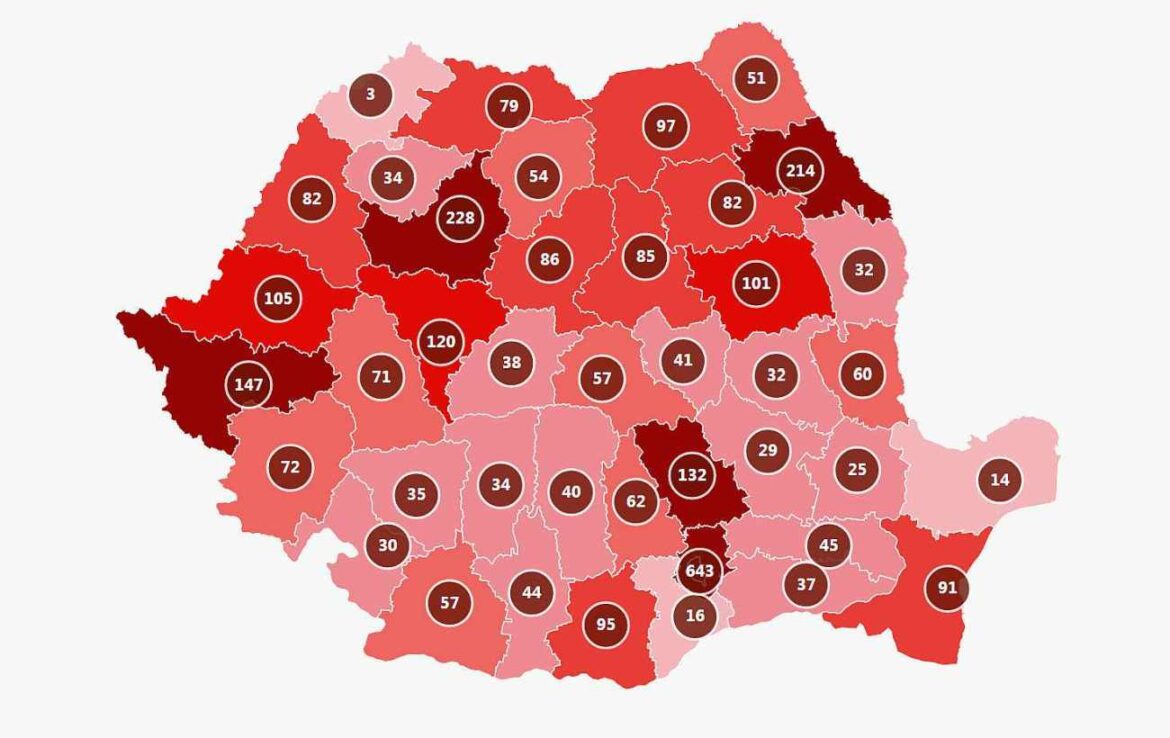 La nivel național, au fost raportate, 3.400 de cazuri noi, în ultimele 24 de ore, din 29.845 de teste (11,6%). În această perioadă au decedat 65 de pacienți, iar numărul celor de la ATI a ajuns la 768.