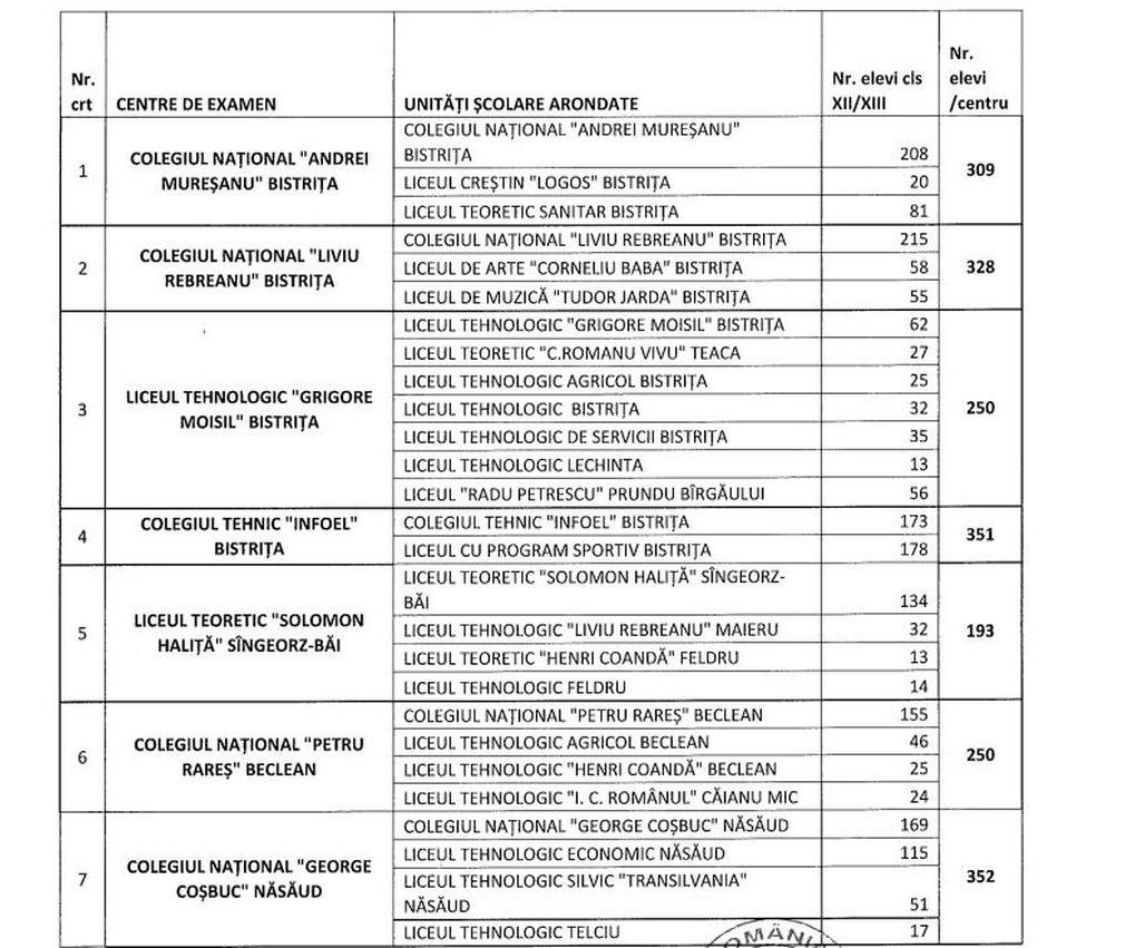 Potrivit Inspectoratului Școlar Bistrița-Năsăud, Bacalaureatul se va desfășura în 7 de centre de examen pentru 2.033 de candidați, dintre care 1.794 provin din promoția acestui an.