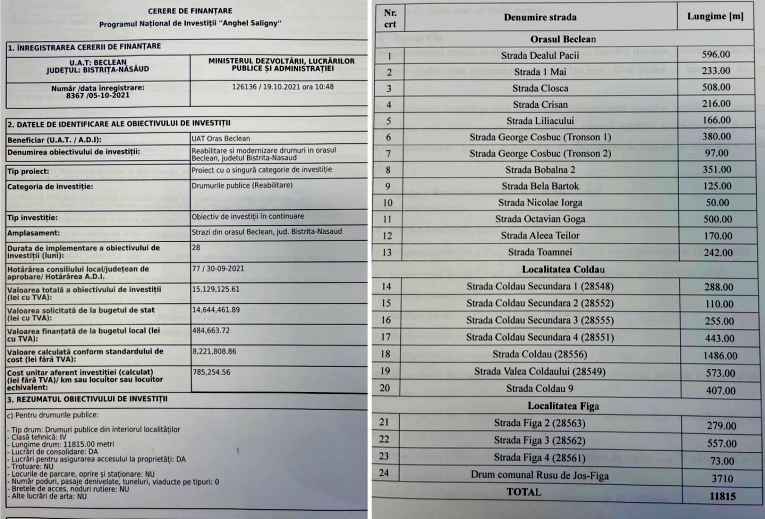 Primarul Nicolae Moldovan a anunțat, astăzi, că a depus la Ministerul Dezvoltării, Lucrărilor Publice și Administrației cererea de finanțare pentru reabilitarea și modernizarea de drumuri în orașul Beclean prin Programul Național de Investiții “Anghel Saligny”.
