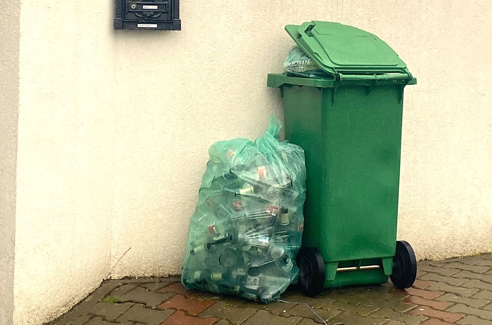 ℹ️ Dacă aveți cantități mai mari de deșeuri reciclabile din sticlă, care nu încap în pubela verde, vă recomandăm să depuneți surplusul de deșeuri în saci transparenți iar operatorul de salubritate va ridica și acești recipienți.