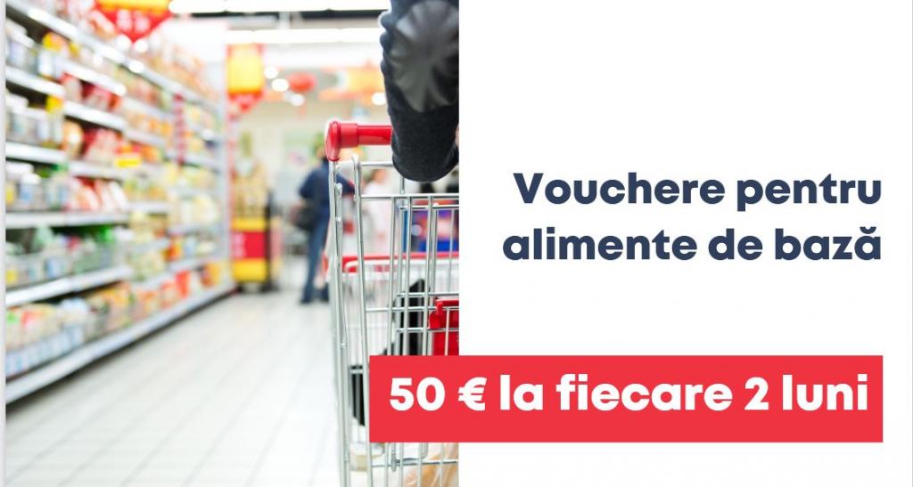 - Vouchere pentru alimente de bază, în valoare de 50 euro, la fiecare două luni.