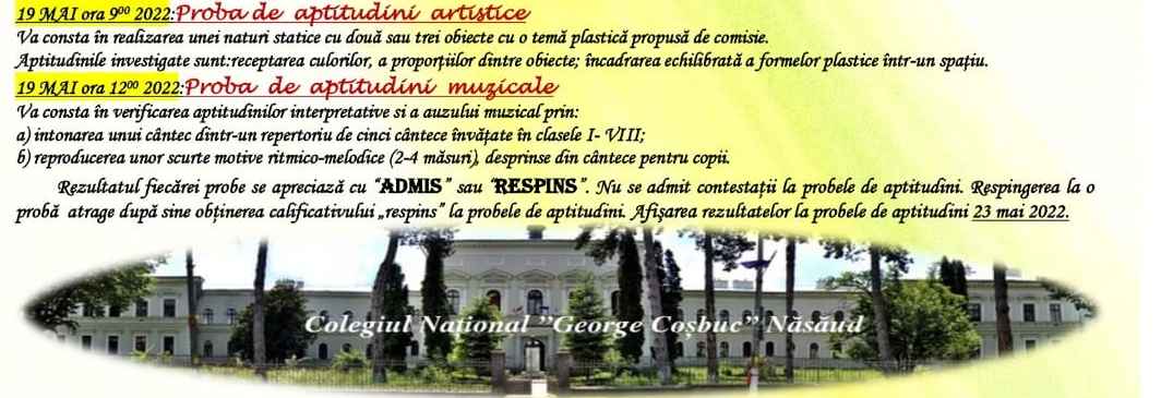 Home » Sunt disponibile 178 de locuri pentru admiterea în clasa a IX-a la Colegiul Național ”George Coșbuc” Năsăud. Pentru profilul pedagogic, probele de aptitudini vor avea loc luna viitoare