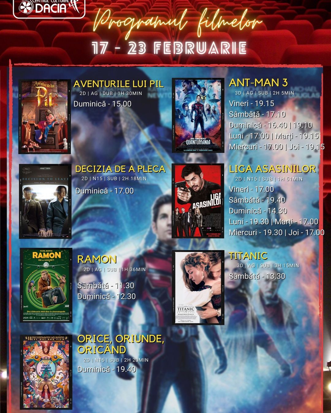 Vezi programul filmelor la Centrul Cultural ”Dacia” din Bistrița în perioada 17 – 23 februarie